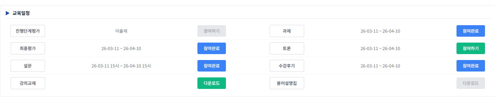 하라는건 다 했는데 (겅의듣기,최종평가,설문,과제,토론,수강후기) 저렇게 떠서 여쭈어봅니다~이제 끝난거겠지요~?
